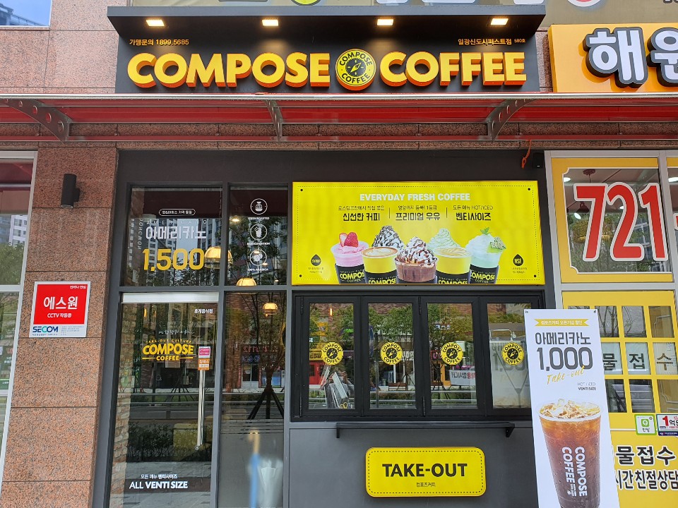 | 21 | 컴포즈커피 일광신도시퍼스트점#카페기장군 일광읍 | 기장군 일광읍 | | ★ 4.6 |